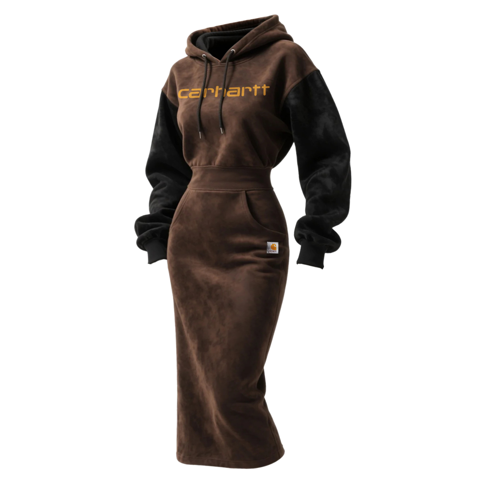 Women's Retro Western Contrast Panel Long Hooded Sweatshirt Dress