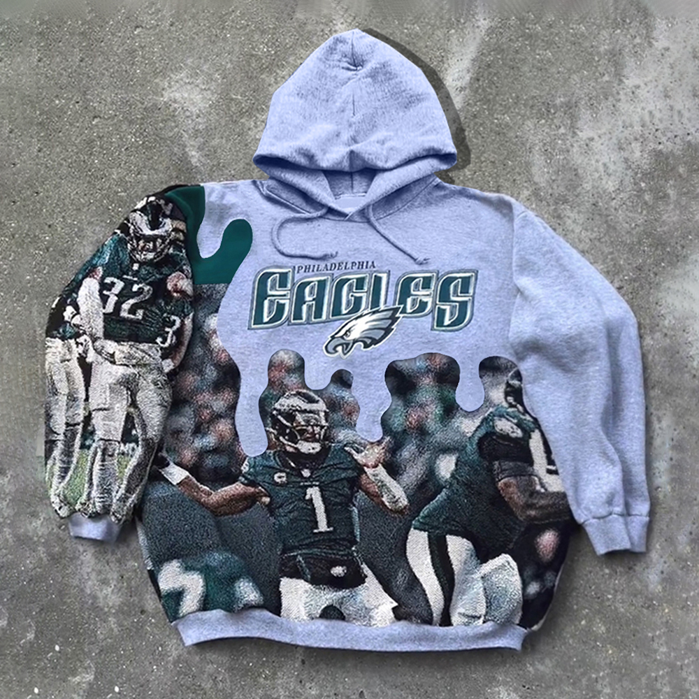Personalized Eagles Patchwork Print Long Sleeve Hoodies