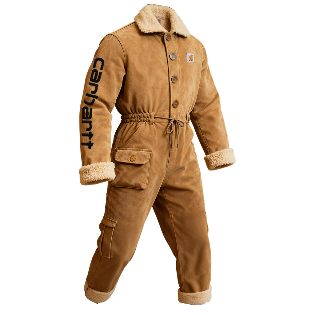 Men's Vintage Suede Winter Workwear Fleece Insulated Coveralls Jumpsuit