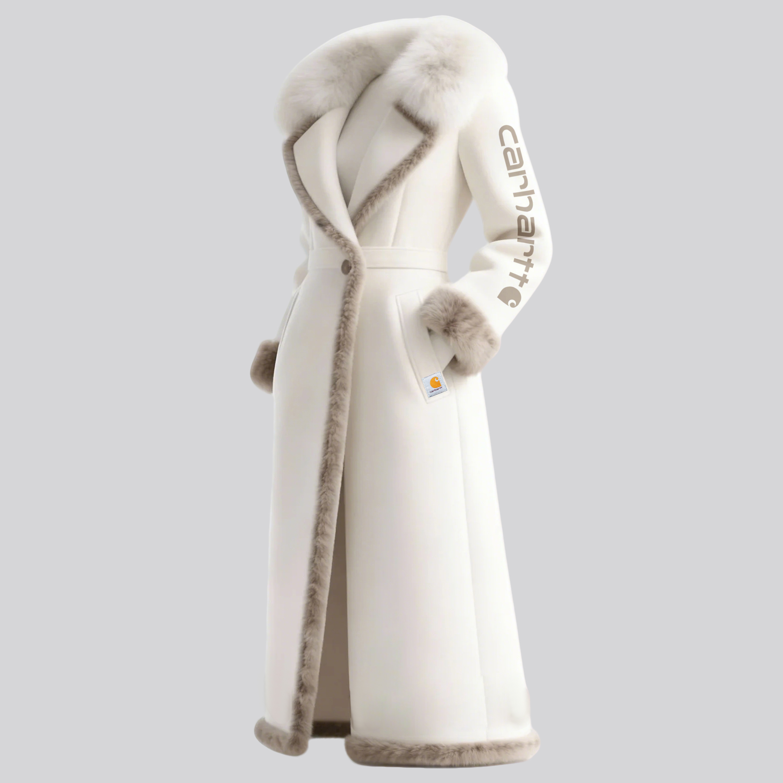 Women's Vintage Cream Winter Puffer Stand Collar Long Coat