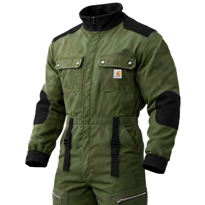 Men's Vintage Army Green Duck Work Insulated Coverall Long Sleeve Jumpsuit