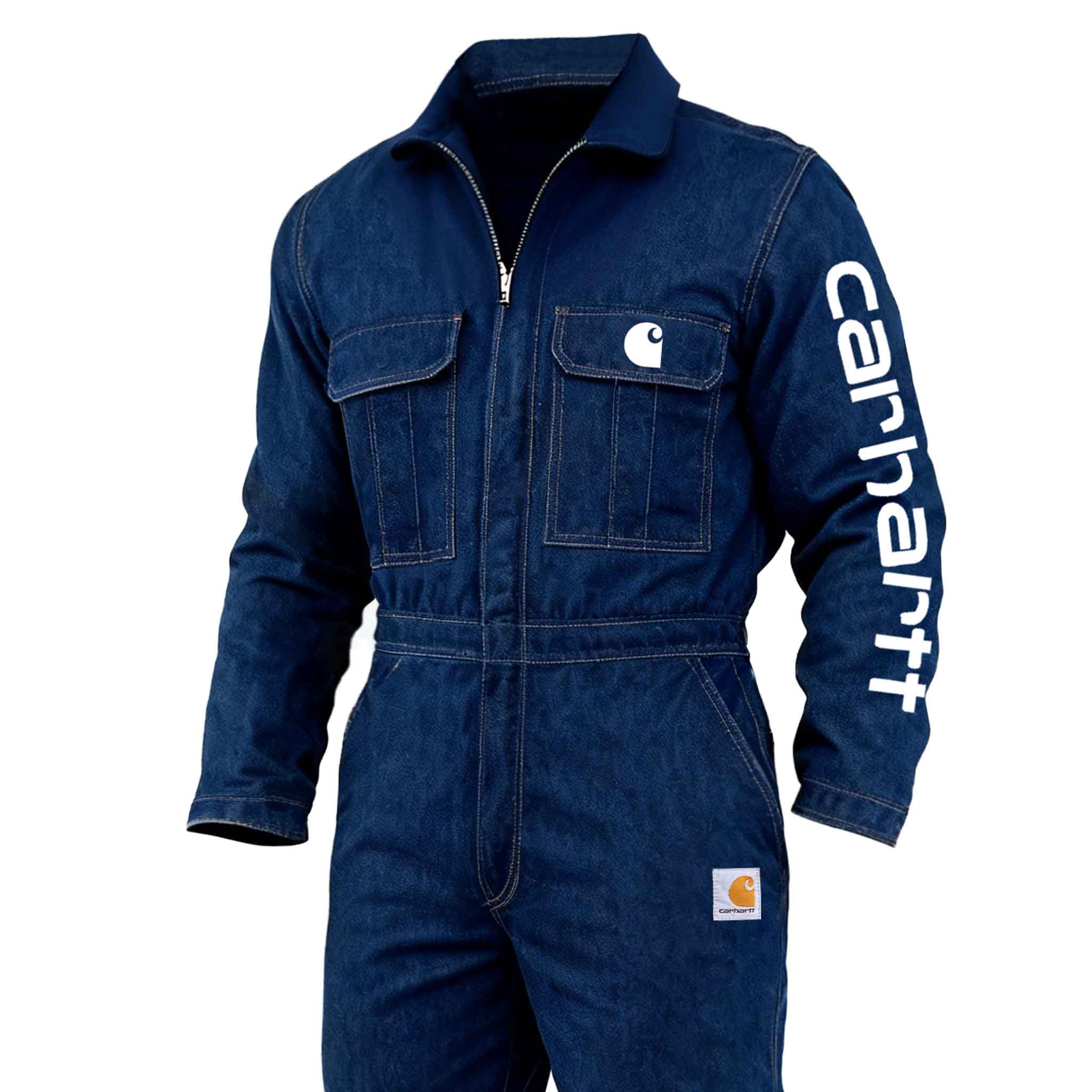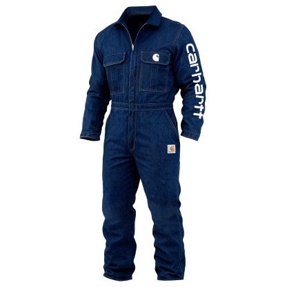 Men's Vintage Blue Denim Duck Work Insulated Coverall Long Sleeve Jumpsuit