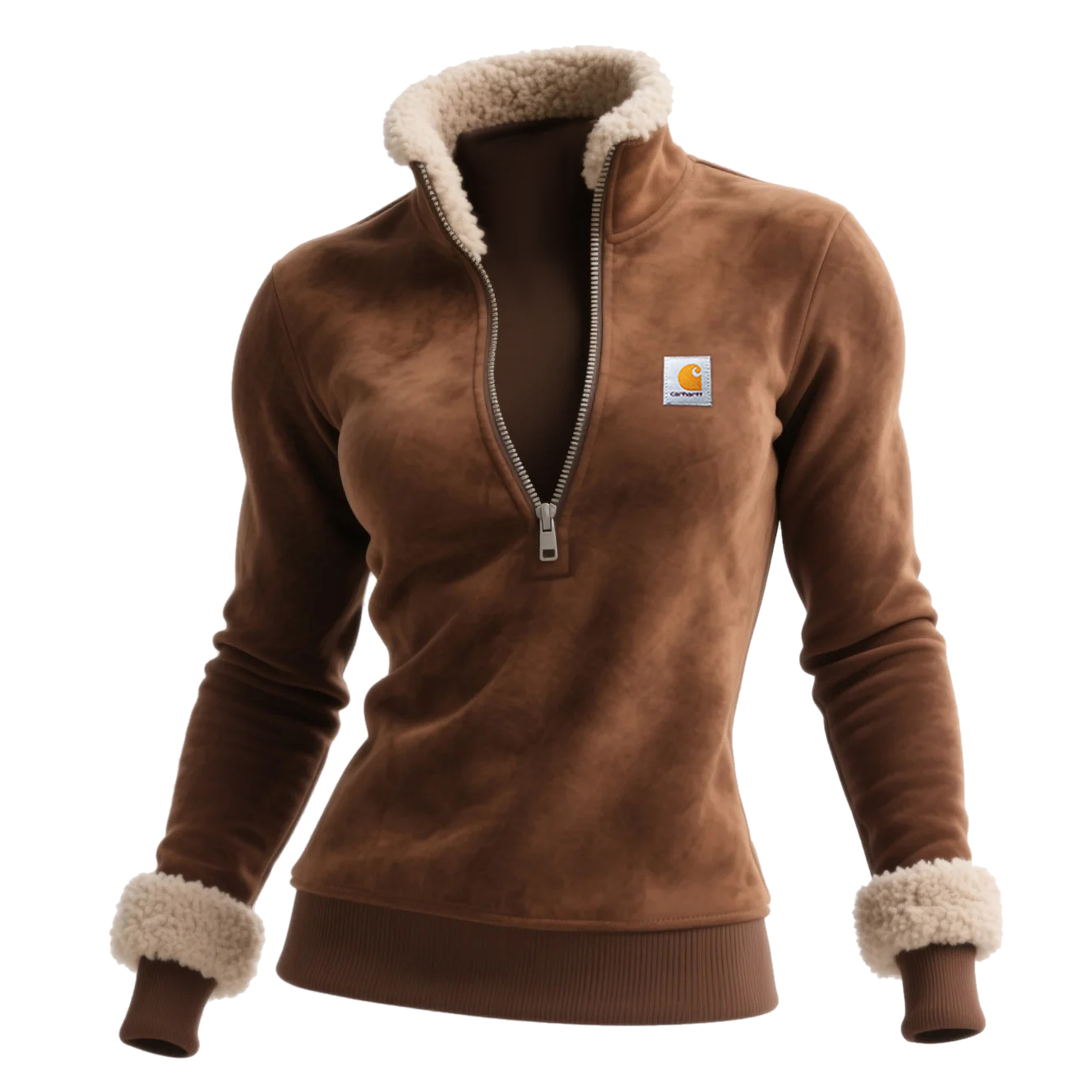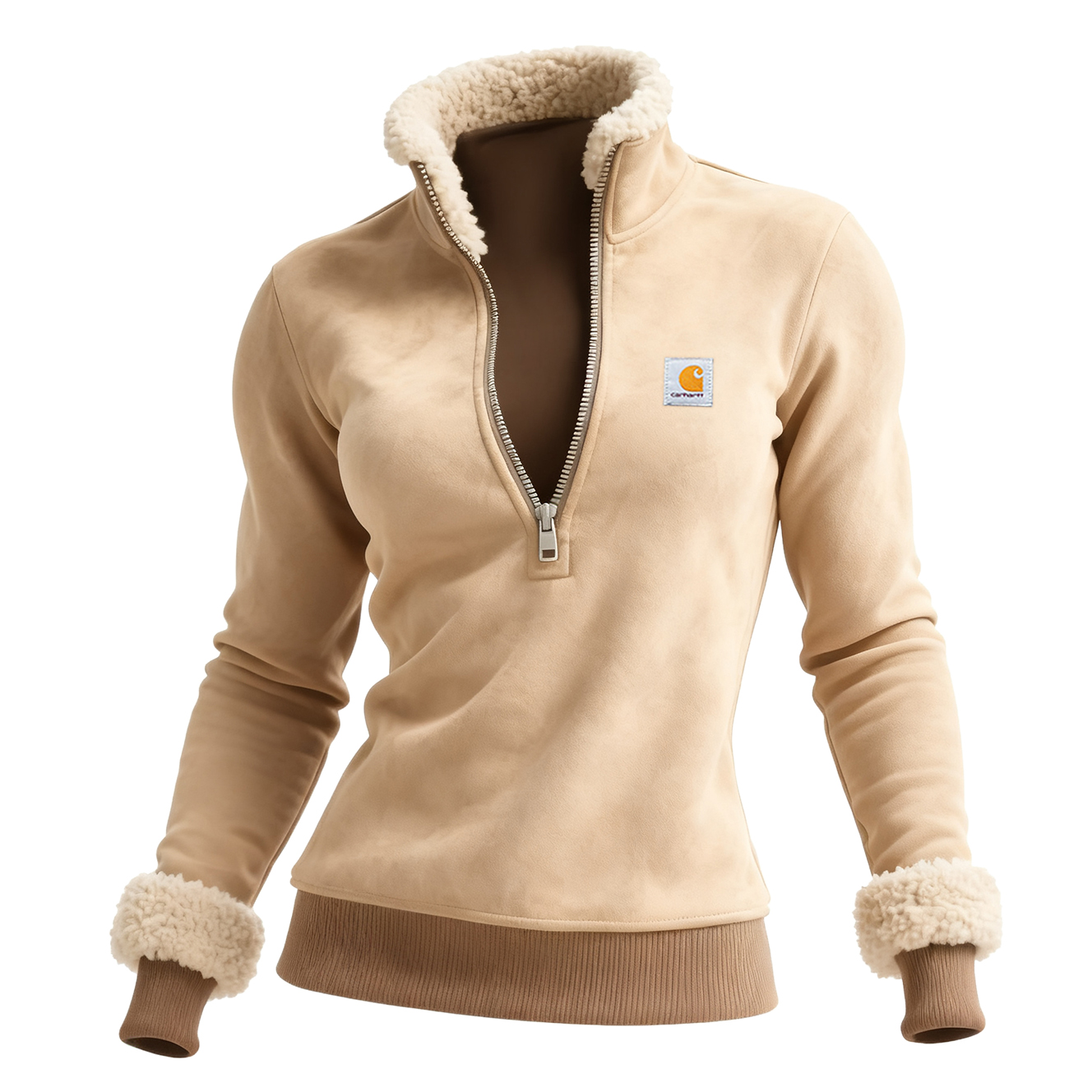 Retro Western Style Women's Suede Contrast Color Stitching 1/4 Zip Stand Collar Sweatshirt