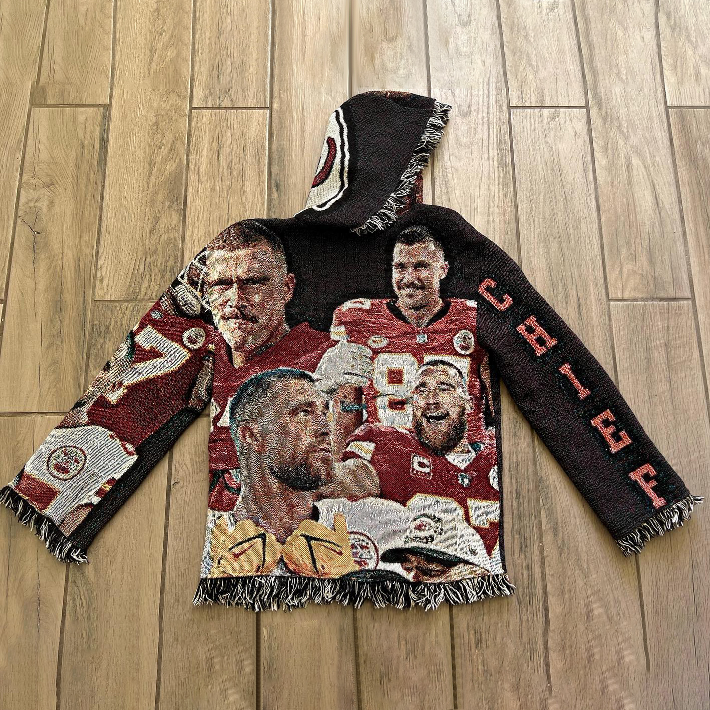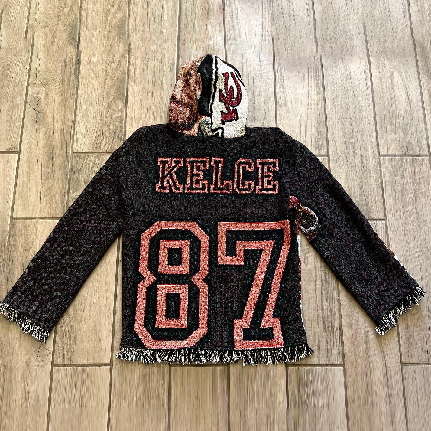 Rugby tapestry tassel hoodie