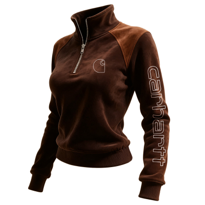 Women's Retro Western Style Contrast Panel Stand Collar Sweatshirt
