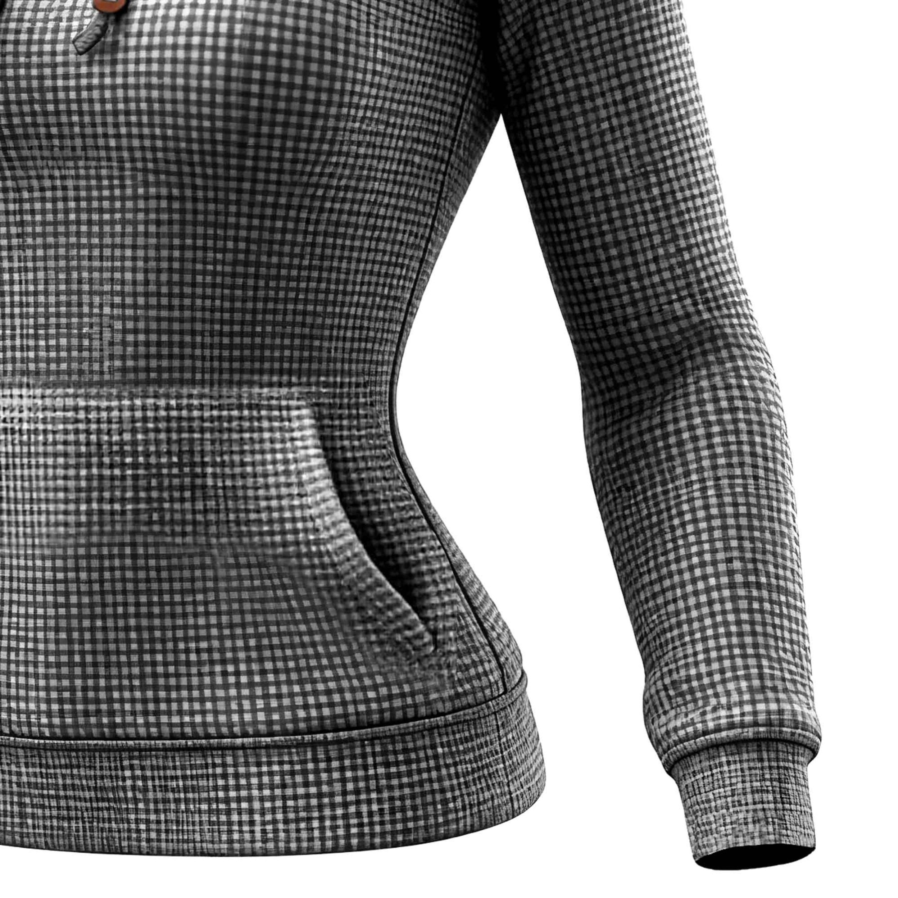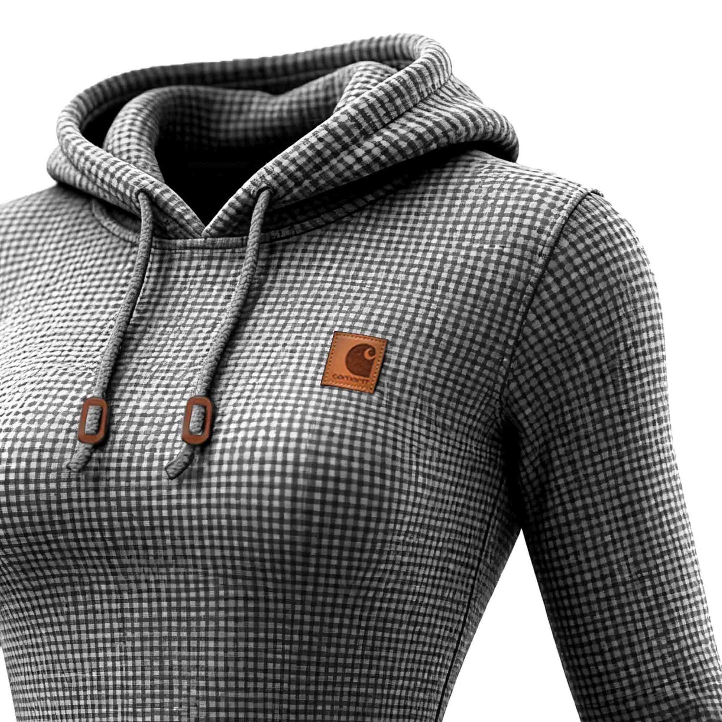 Women's Vintage Floral Gray Waffle Knit Pocket Long-Sleeved Hoodie